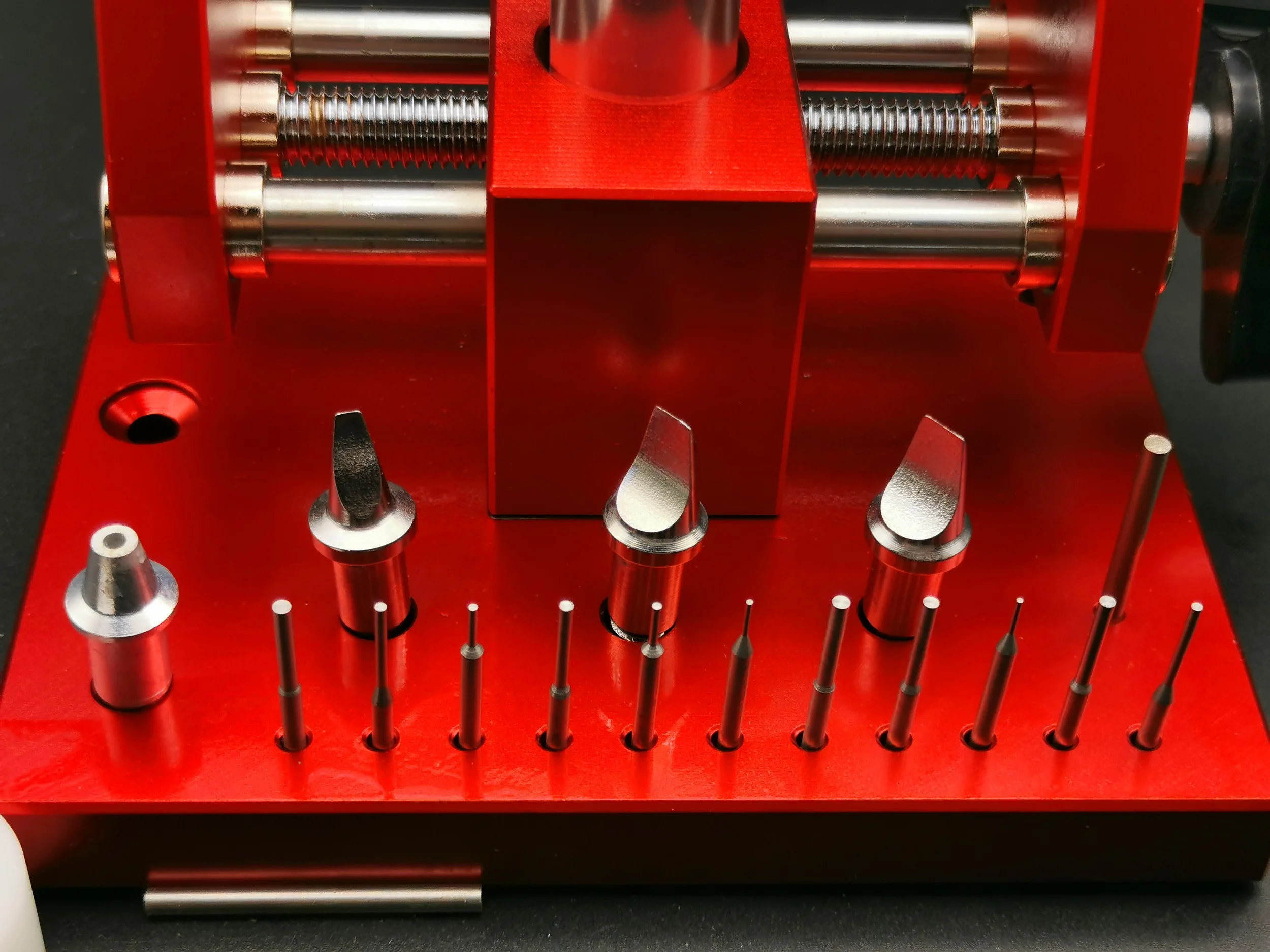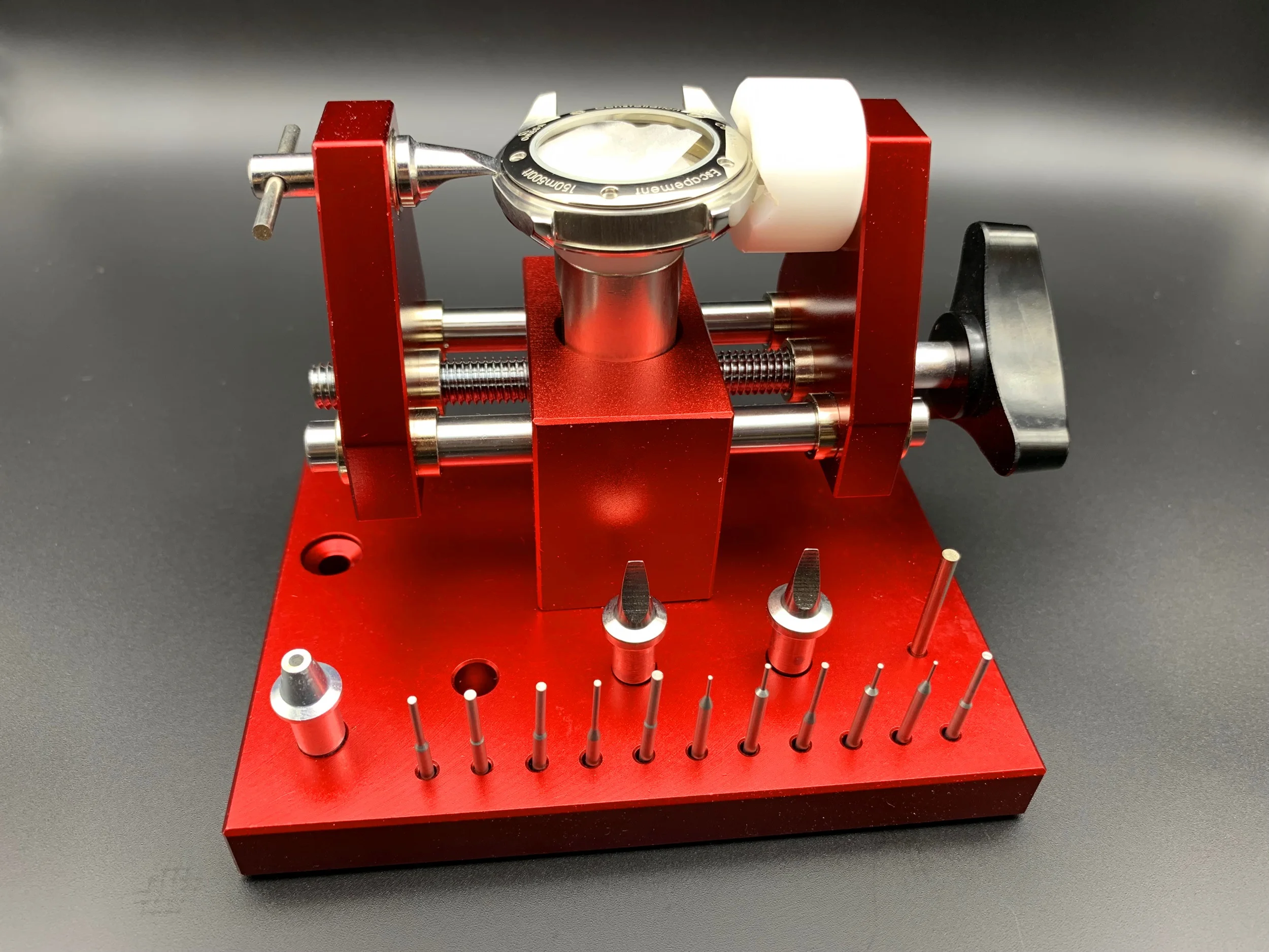Он сделан для точной регулировки оснастки, а держатель изготовлен из нескользящего Delrin, установленного на пружине для поддержки, которая не повредит чехол для часов.
