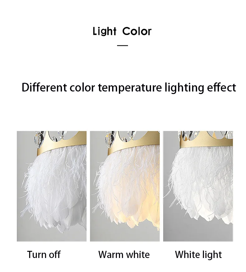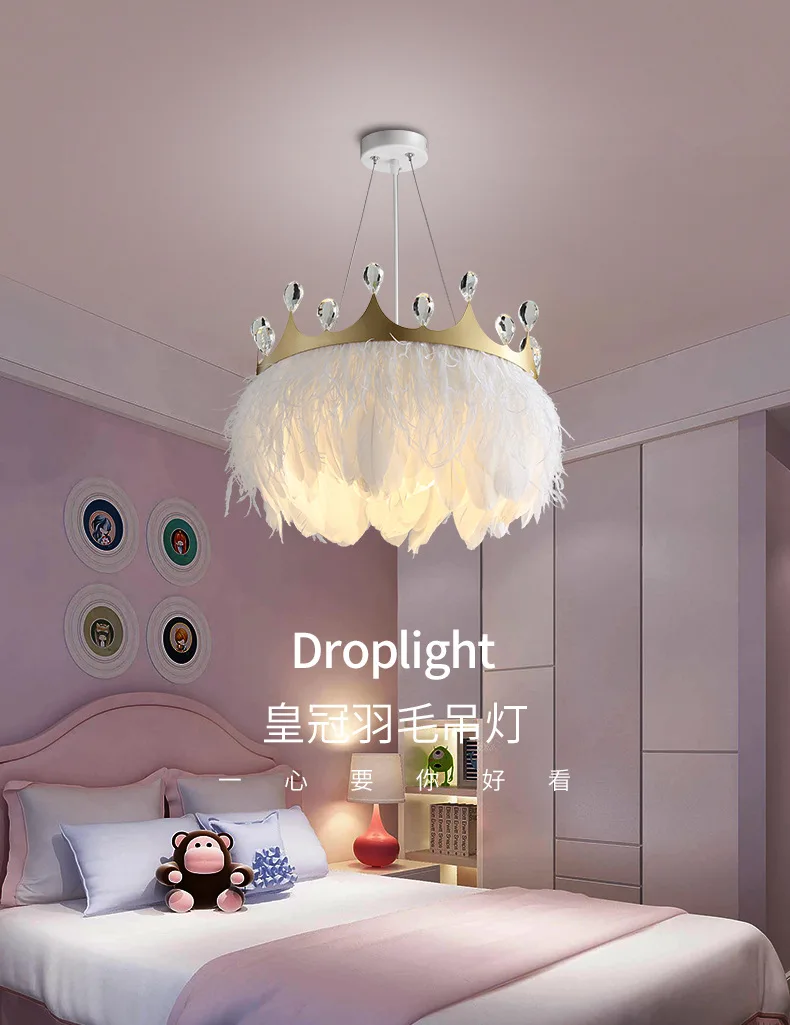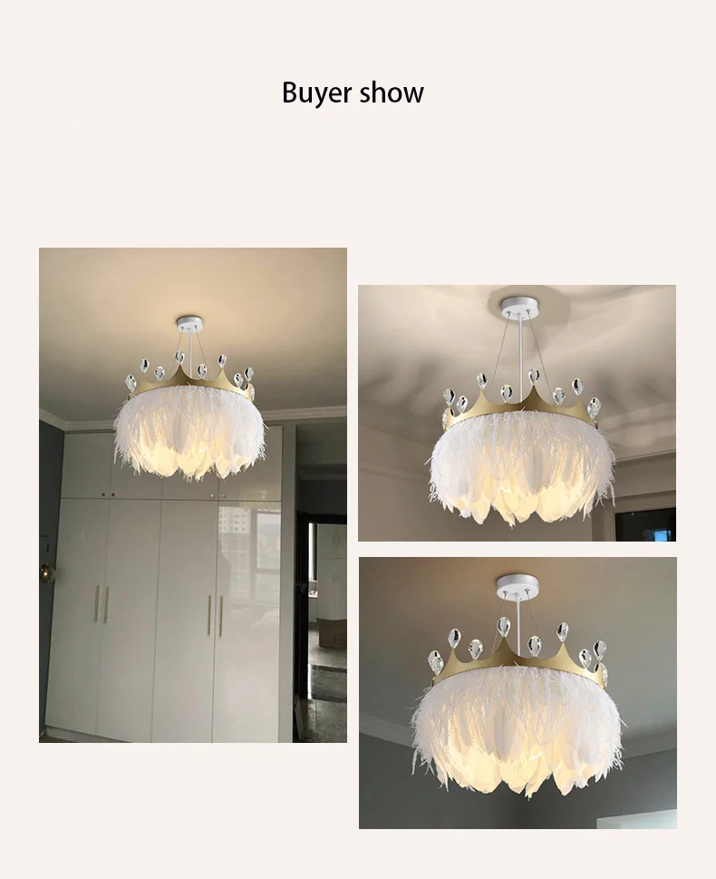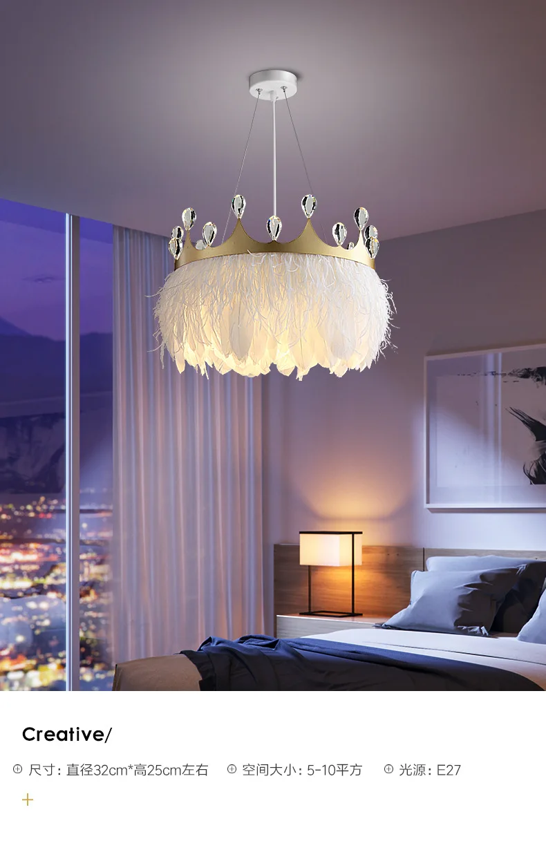 Современный подвесной светильник Kobuc с белыми перьями, Подвесная лампа в форме золотой короны для комнаты девушки с хрустальным декором для спальни, отеля, 110 В, 220 В переменного тока