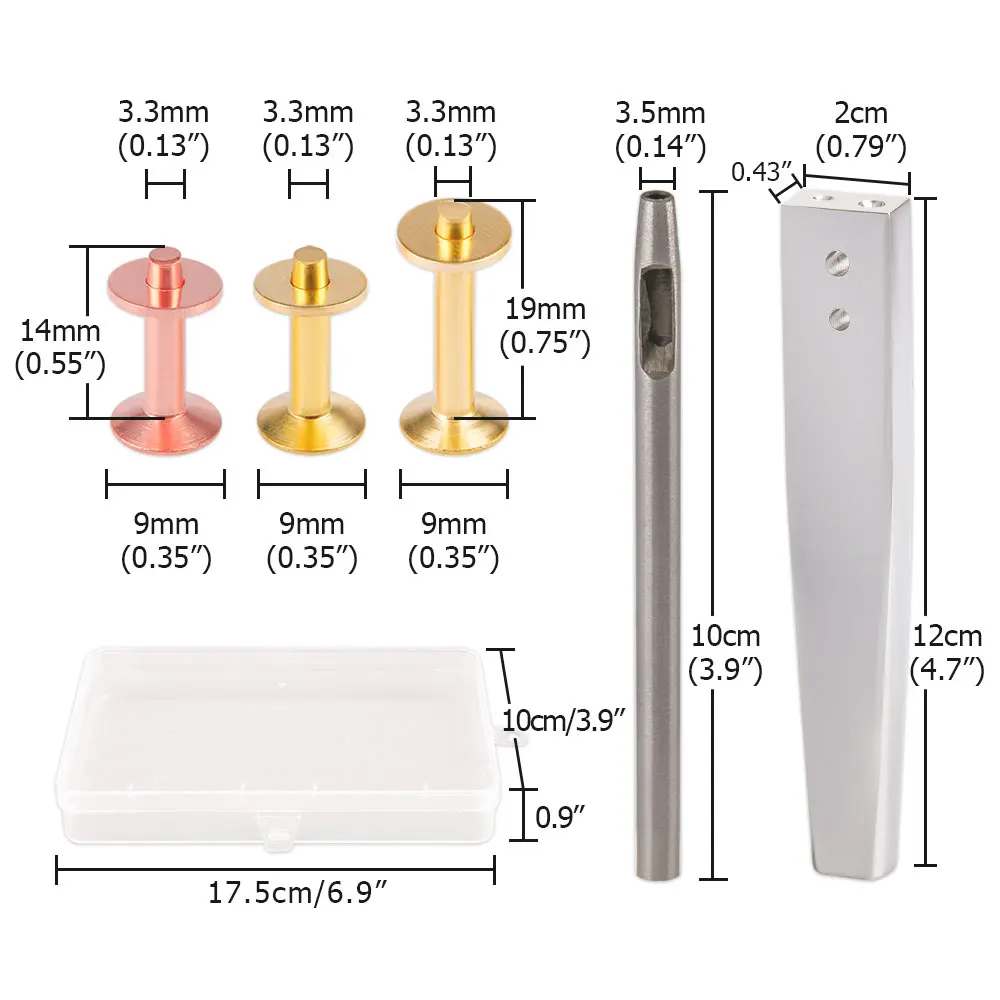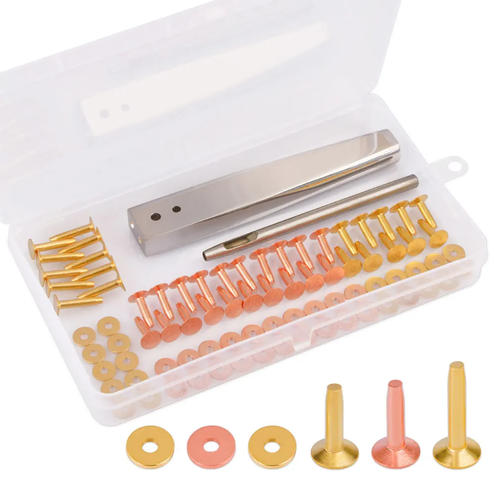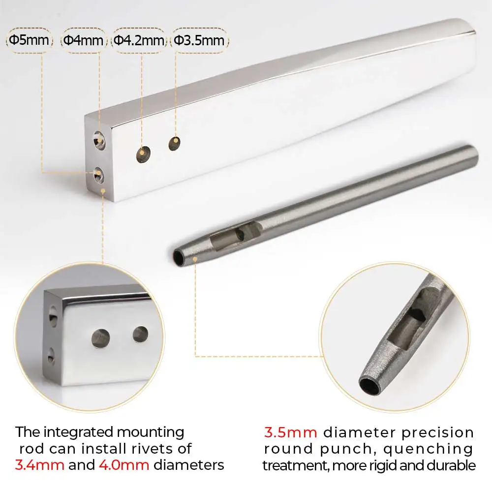 Кожаный набор инструментов, Медь и латунные заклепки и декоративными швами, 2 в 1 Размеры 9 и размер 12 заклепки застежка Установка инструмента, 3,5 мм круглый удар с коробкой