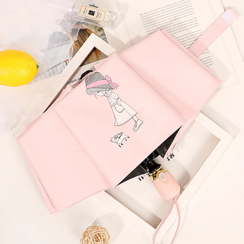 Новый полностью автоматический 3 складной зонт женский корейский маленький свежий Солнечный и дождевой двойной складной солнцезащитный Солнцезащитный УФ-защитный виниловый зонт от солнца