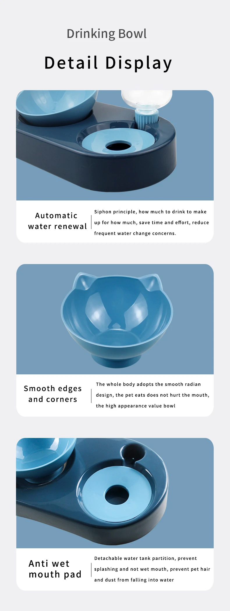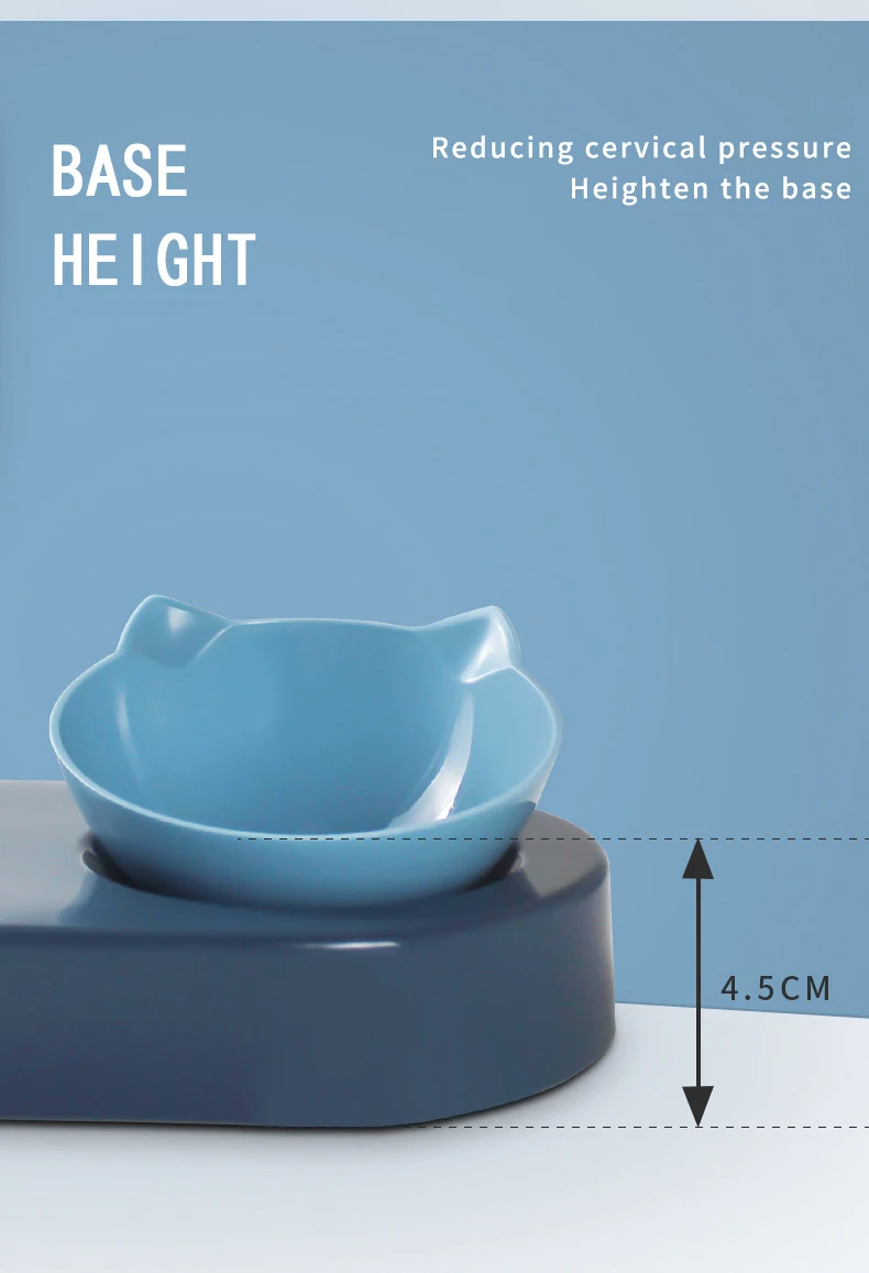 1. Он разработан с наклоном15 °Для увеличения основания, чтобы уменьшить сжатие шейного позвонка, вызванное чрезмерным опусканием головы при еде питомца, и для здорового питания.