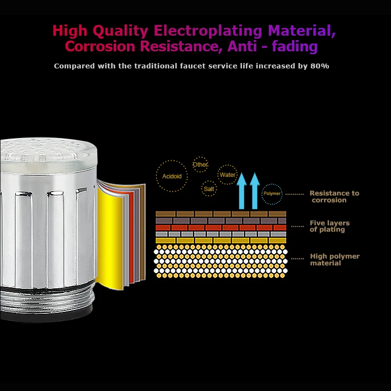 Чувствисветильник крана изменит цвета в зависимости от температуры воды.