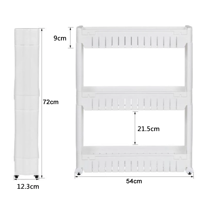 Quick and easy snap together assembly, easy care. The slim storage rack shelf wide design can fit an almost any narrow space.