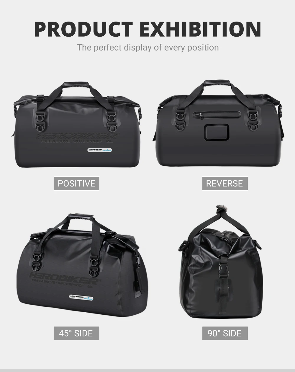 Использование водонепроницаемого материала, водонепроницаемых молний и карманов, предотвращающих попадание дождевой воды в сумку.