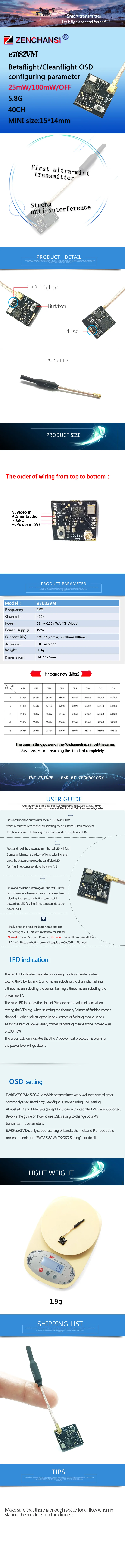 5,8G 40CH 50/100 мВт Мощность Регулируемый VTX