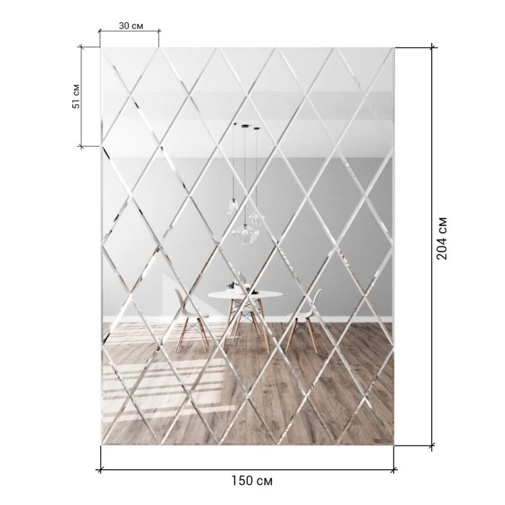 Посылка включает в себя: комплекта зеркальных плиток что бы составить панно размером 150*204см: