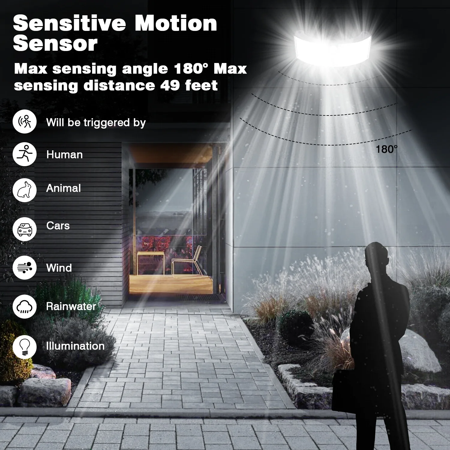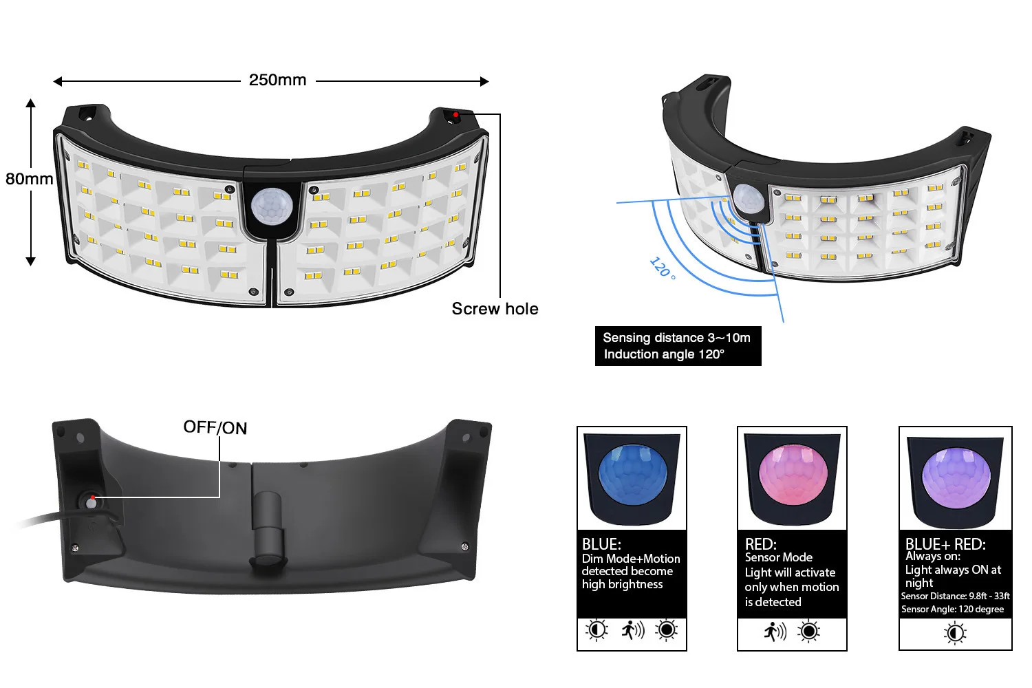 3. Расстояние и угол срабатывания: 10 метров и 140 °