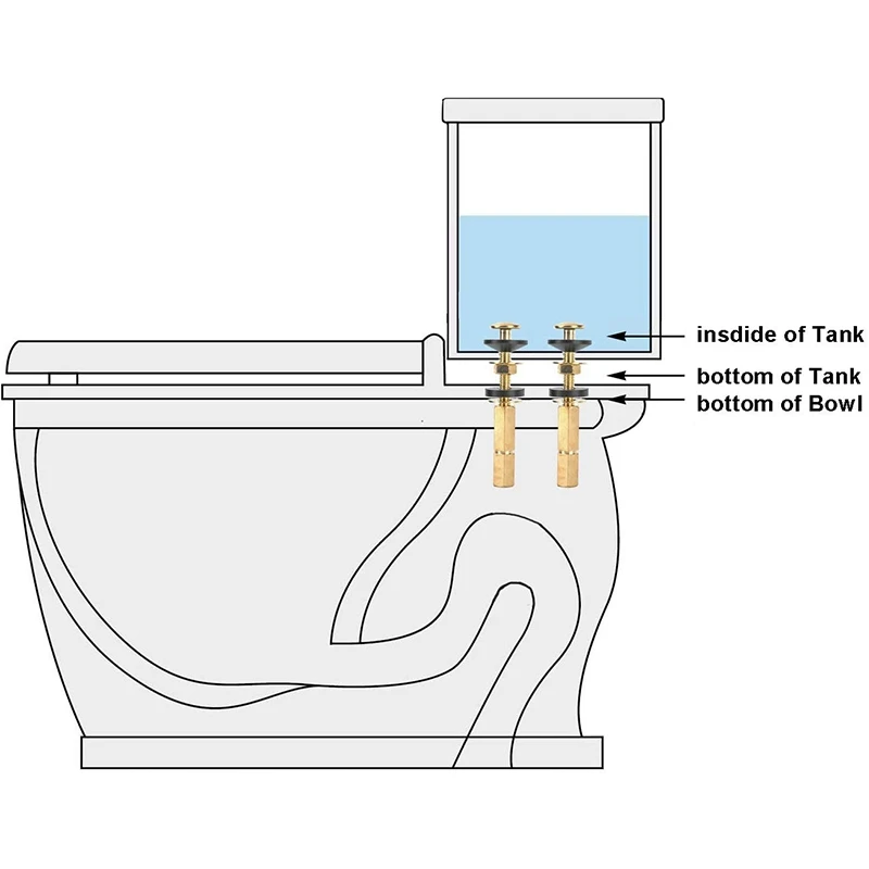 Резервуар для болтов чаши: большие резиновые болты на верхней и нижней сторонах. Это фиксирует и запечатывает резервуар для унитаза в чашу.