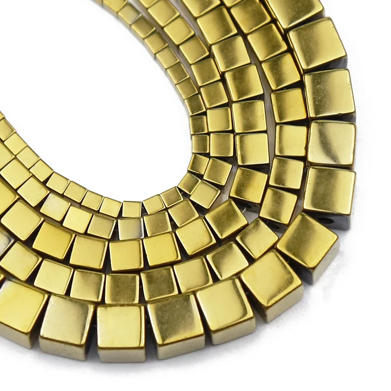 2/3/4/6mm Gold Vacuum Plating Square Hematite Natural Stone Spacers Loose Beads For Jewelry Making Diy Bracelets necklace Accessories Findings Strand Long: 15inch 2x2MM: 165pcs/strand 3x3MM: 120pcs/strand 4x4MM: 90pcs/strand 6x6MM: 65pcs/strand
