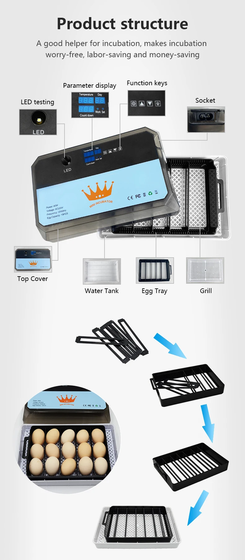 HT-15 инкубатор для яиц, умный контроль температуры, ферма, инкубатор для курицы утки