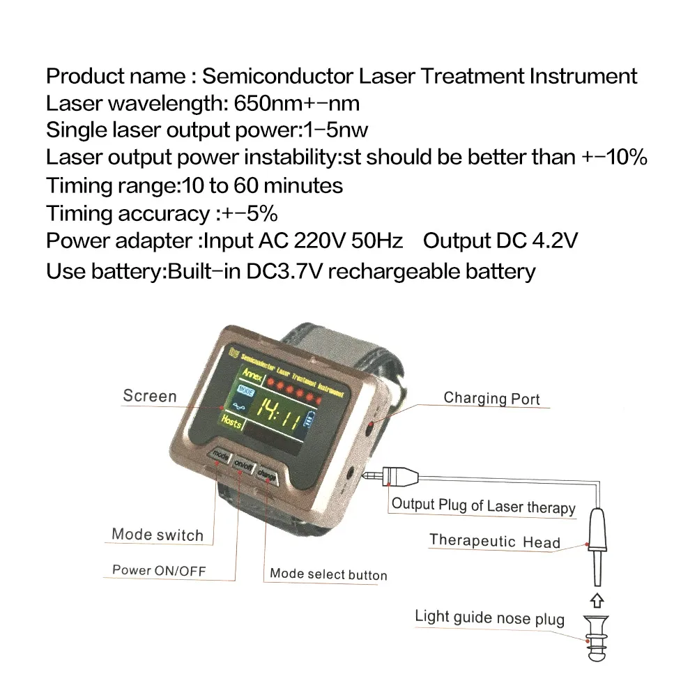 1. Наше устройство принимает лазер 650 нм облучает акупунктурную точку.