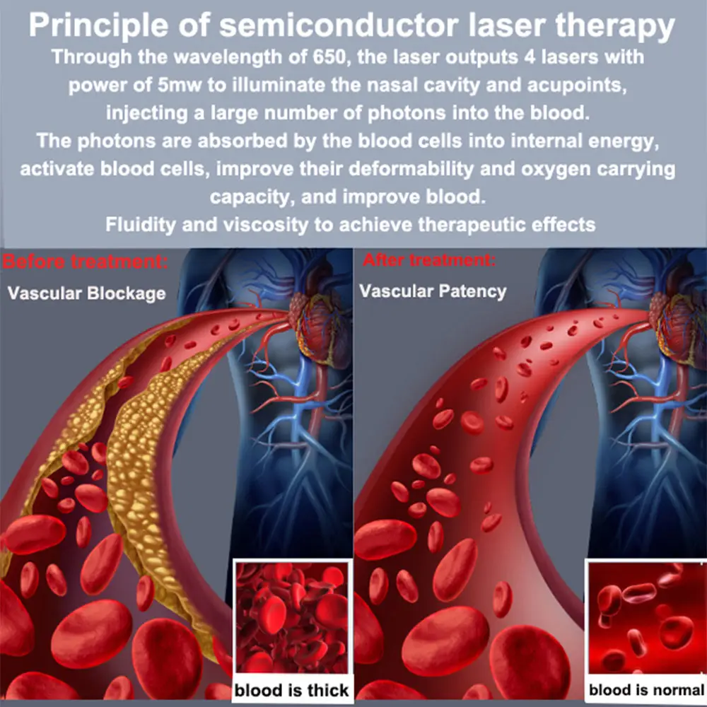 [Индикация] полупроводниковый лазерный инструмент для лечения применяется для лечения гипервизкосемии, гиперлипидемии, сердечно-сосудистых и Цереброваскулярных ишемических заболеваний и ринита.