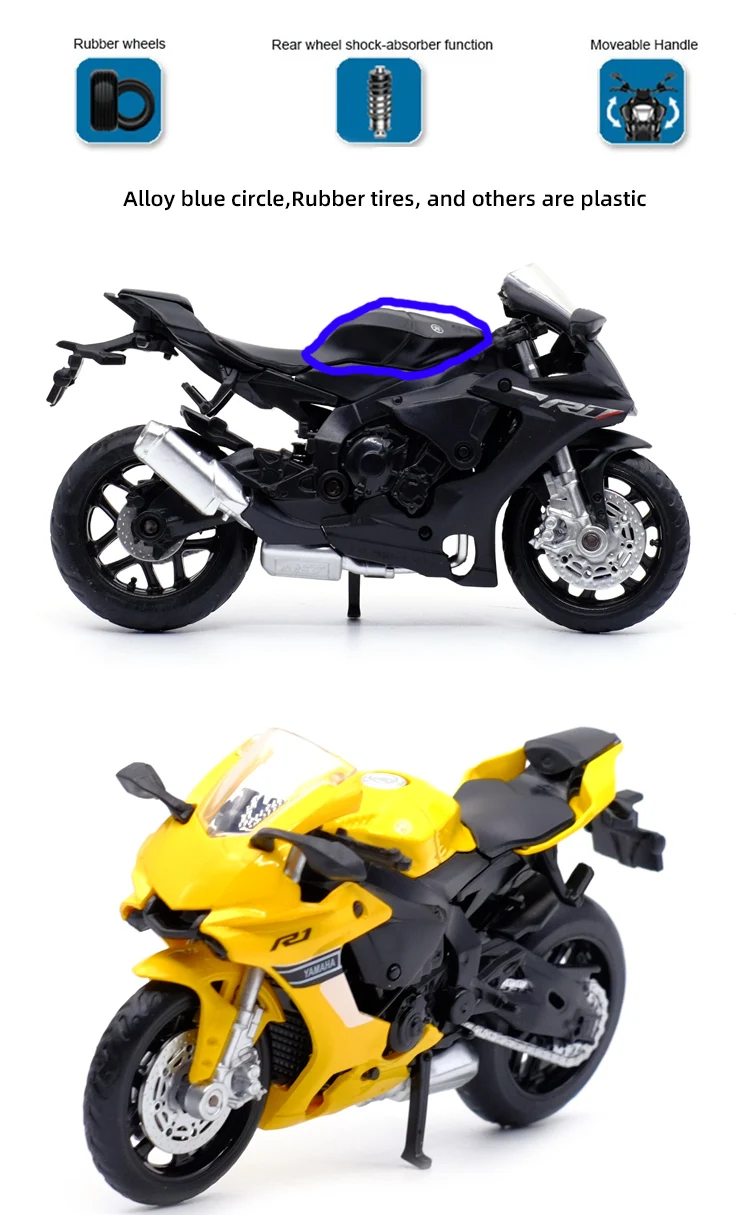 Модель мотоцикла CaiPo 1:18 YAMAHA YZF-R1 из сплава, Спортивная модель, работающая короткопоглощающая игрушка для детей, подарки, коллекция игрушек