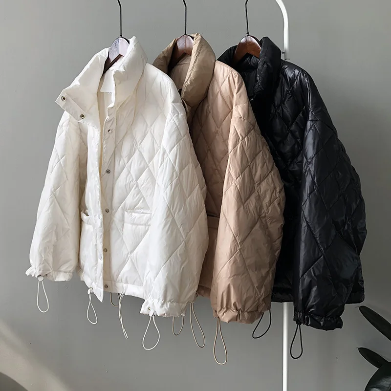 Женский пуховик с воротником-стойкой, теплый свободный пуховик со стразами в Корейском стиле, новинка зимы 2020