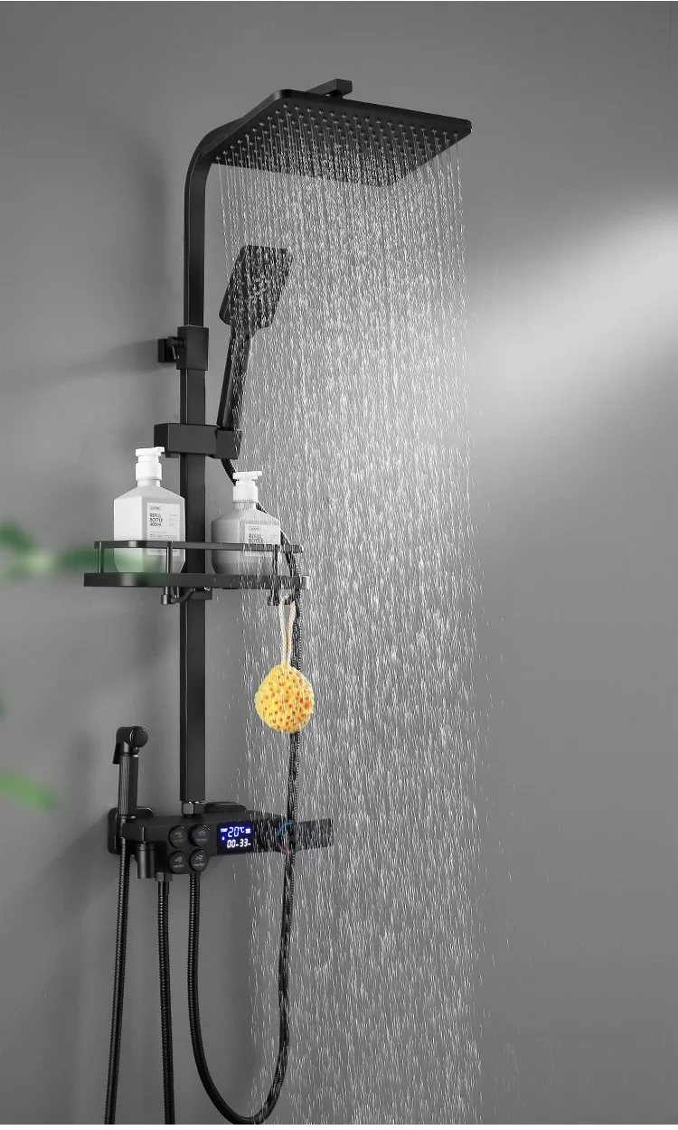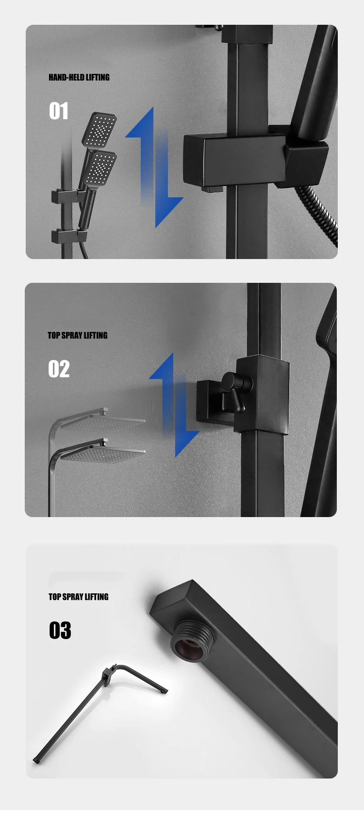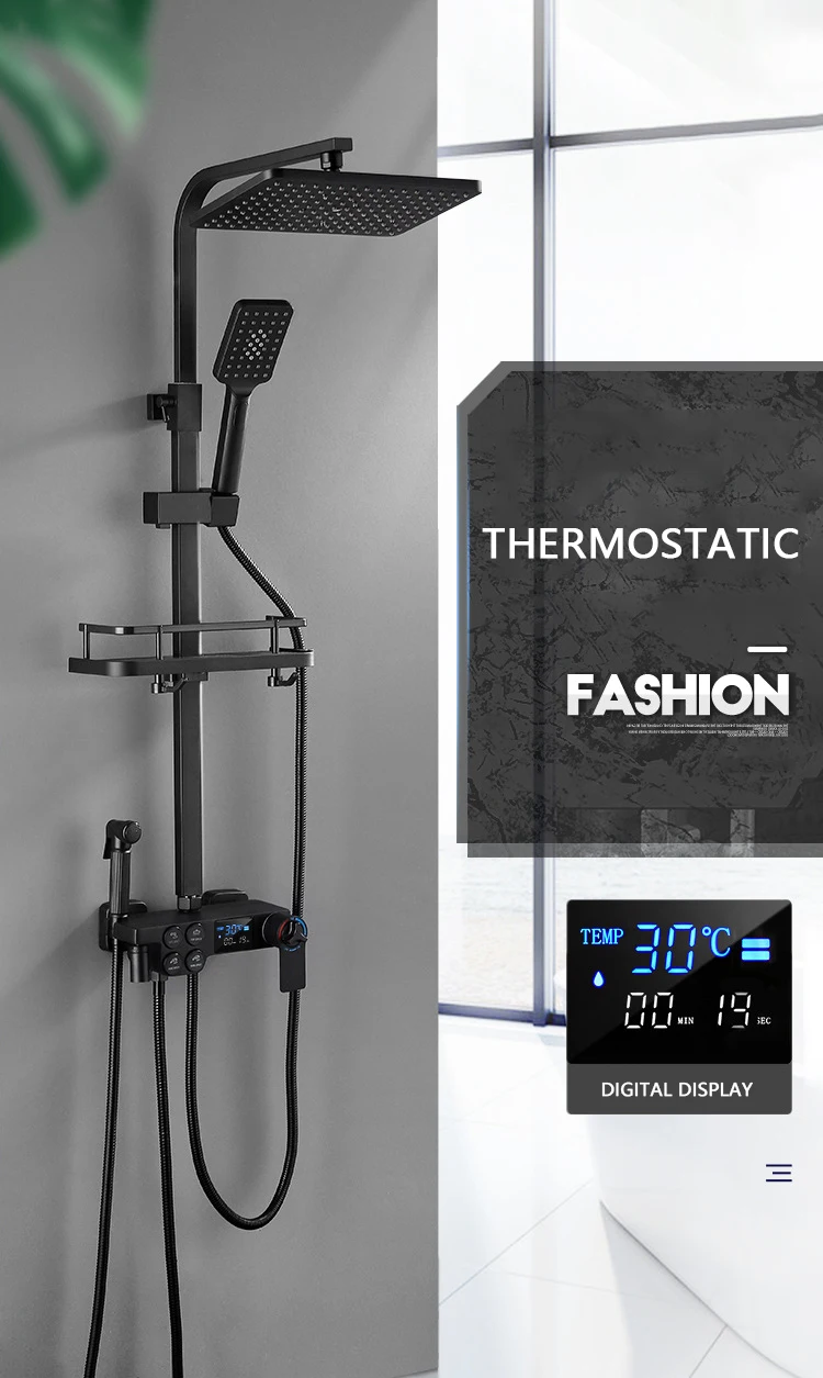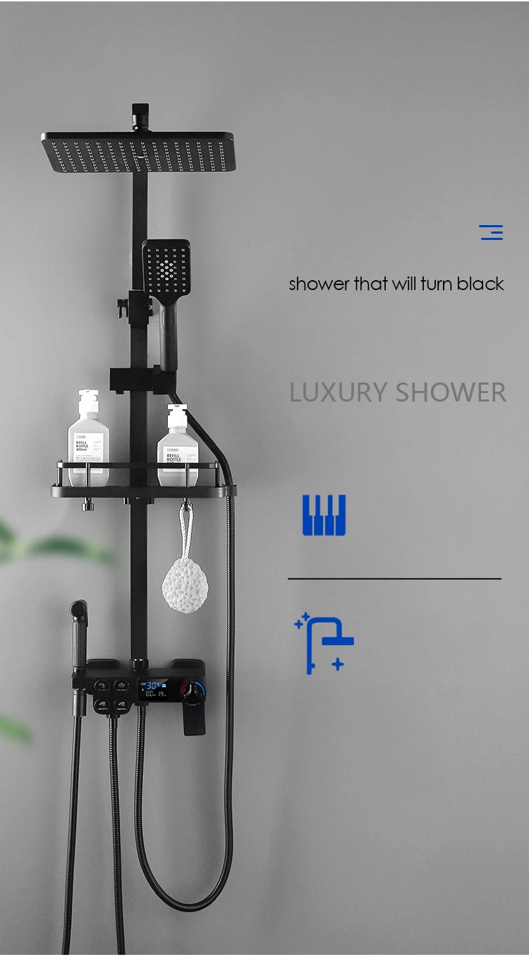 Hot Cold Mixer Shower Set Bathroom Smart Thermostatic Shower System Square Head Automatic Bath Faucet Wall Mount Luxury Black
