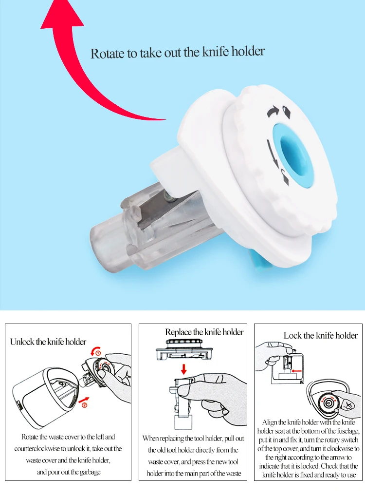 2. При замене держателя инструмента извлеките старый держатель инструмента непосредственно из крышки отходов и нажмите новый держатель инструмента в основную часть отходов