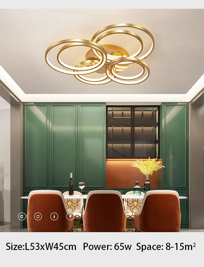 Детали продукта 1. Цвет корпуса: Золотая оправа 2. Материал: абажур из ПВХ, алюминиевый сплав, металлический корпус 3. Вход: 110 В 220 В 4. Применение: гостиная, спальня, столовая, кухня 5. Размер света Д72*ш60 см Мощность: 105 Вт Площадь: 10-20 м2 Д53*ш45 см мощность: 65 Вт Площадь: 8-15 м2 6. Цвет света: Теплый белый без пульта Холодный белый без пульта Диммируемый с пультом дистанционного управления «есть пульт дистанционного управления и теплый белый, холодный белый, естесветильник»