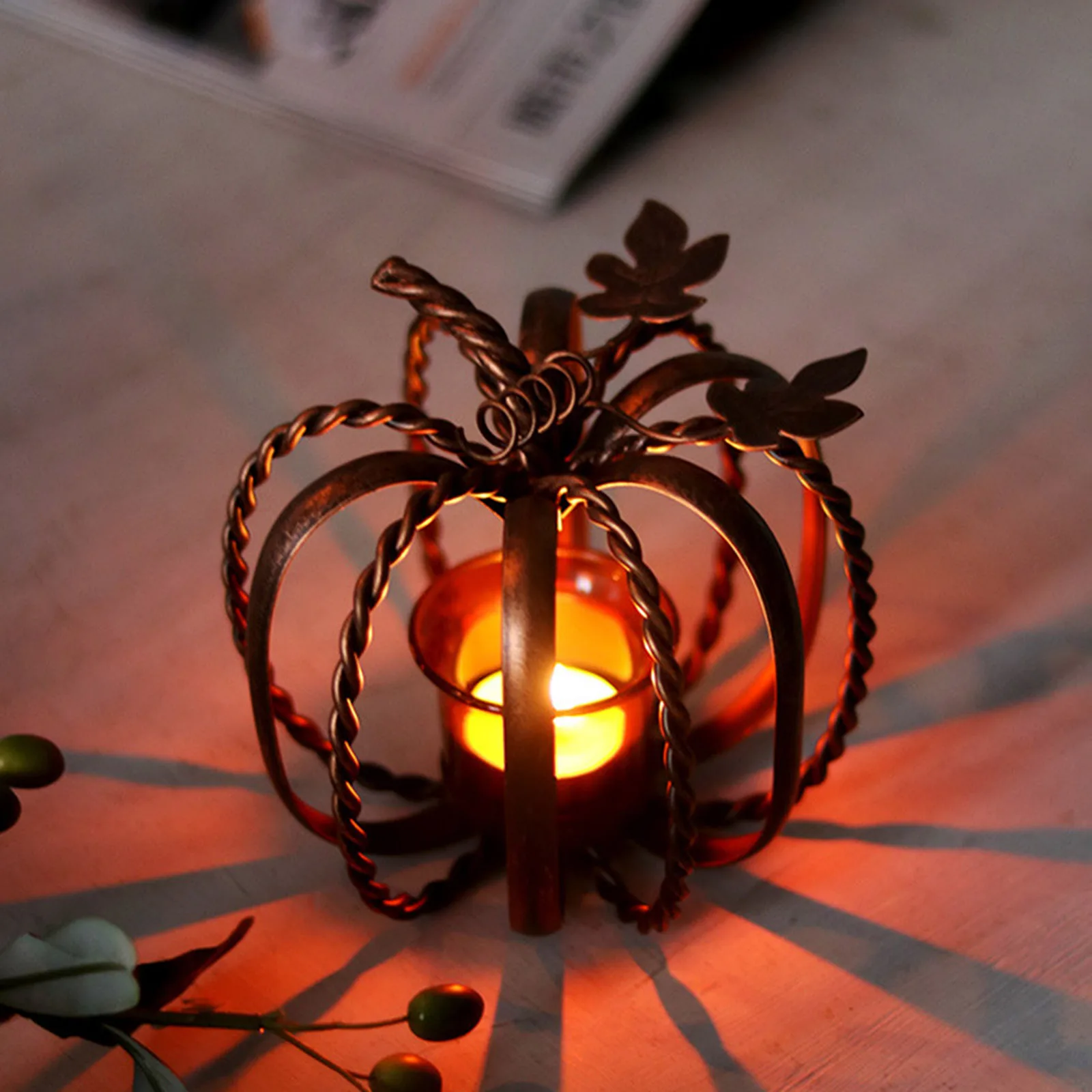 1. Когда появляются холодные задержки падения, сохраняйте свой дом ужасным и теплым, несмотря на снижение температур! Тыква металлический подсвечник имеет сладкий металлических бусин в форме тыквы, с золотыми металлическими листьями, а также блестящие чай светильник подсвечник в центре. Поместите его на боковой столик или по центру для великолепного осеннего прикосновения.