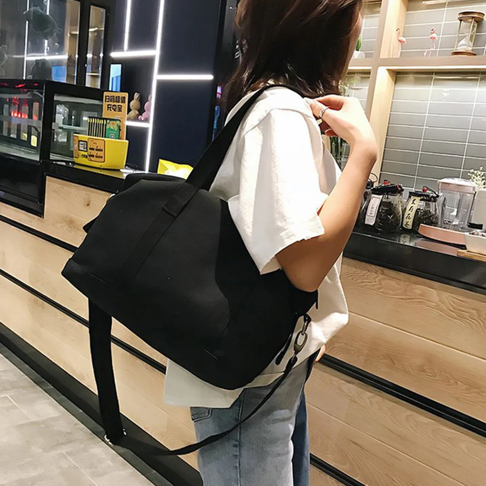 Простая парусиновая сумка-мессенджер для женщин 2020, вместительная однотонная черная сумка через плечо для девочек, повседневная женская сумка-тоут