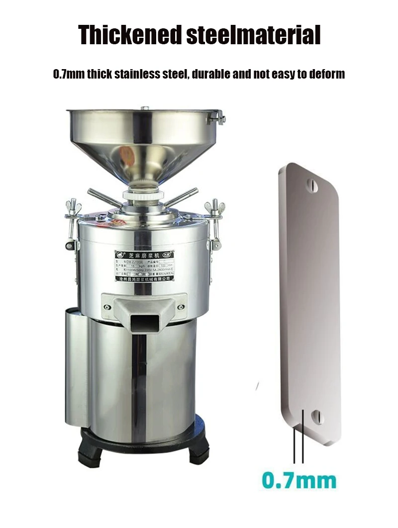 Название продукта: измельчитель кунжутного арахисового масла Модель продукта: XT-160 Производственная эффективность: 30 кг/ч Напряжение: 220 В Мощность двигателя: 1,5 кВт Диаметр колеса: 160 мм Вес изделия: 42 кг Размер продукта: 35*32*70 см Материал изделия: нержавеющая сталь + полированный алюминий