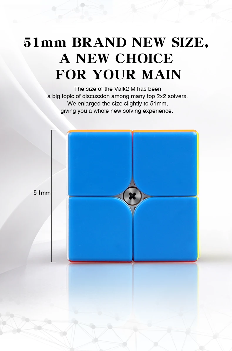 Название продукта: Qiyi valk2 M 2x2x2 Магнитный куб Цвет: черный, без наклеек Размер куба: 51 мм * 51 мм * 51 мм Ps. Поставляется в собранном, наклеенном и хорошо смазанном виде и в бумажной коробке.