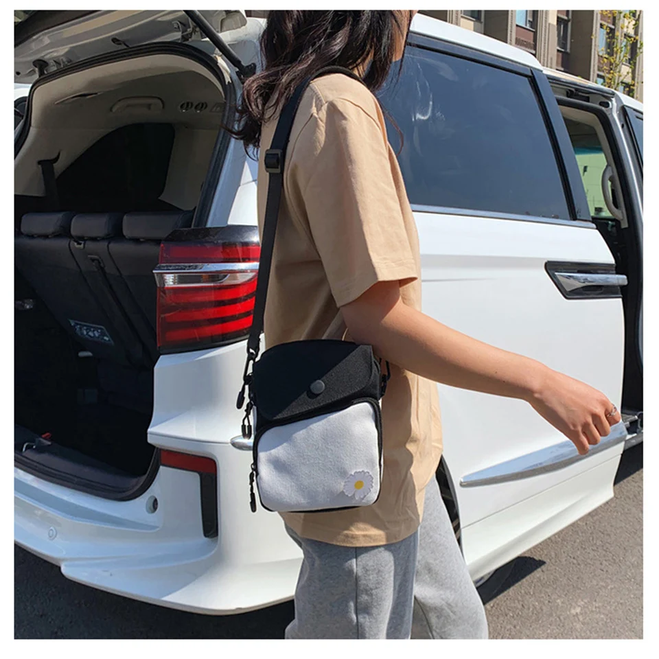 Цвет: черный, желтый, синий, черный Материал: холст, хлопковая ткань Размер сумки: 15х7х19 см Gneder: студент, девушки, женщины, женщины, дамы Украшение: цветок Плечевой ремень: 1 шт.