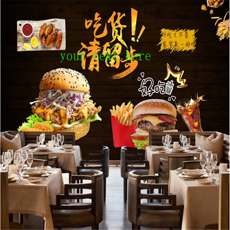 Custom Burgers Western Fast Food Restaurant Background Wall Mural Wallpaper 3D Snack Bar Pizza Industrial Decor Wall Paper 3D