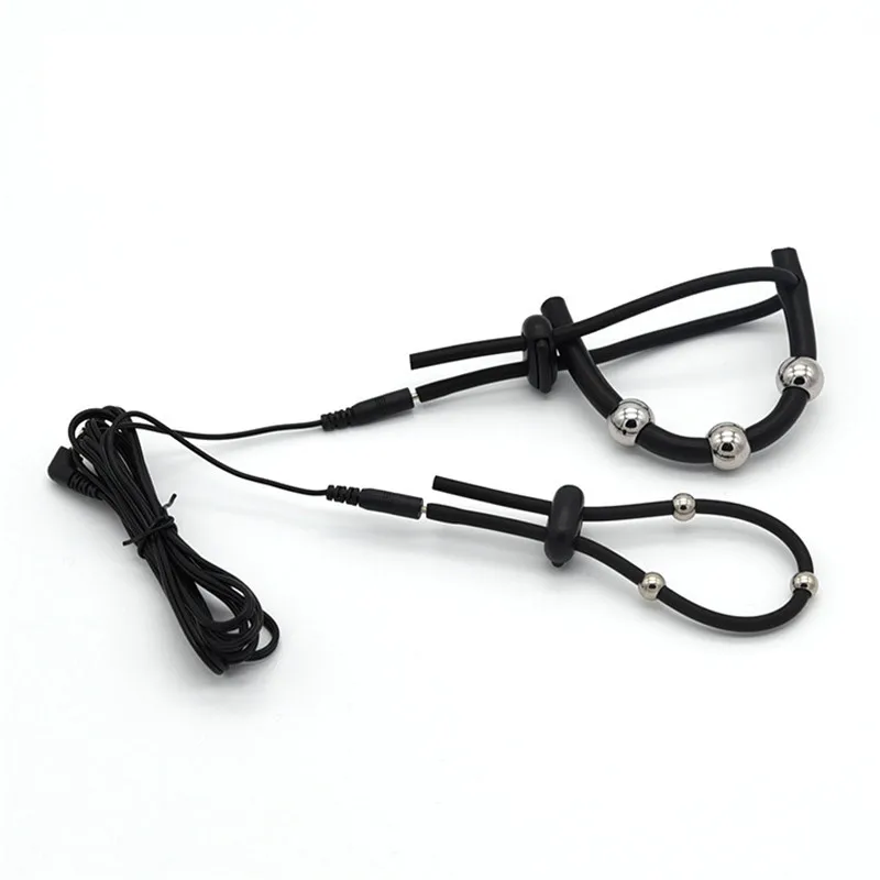 Электро шок Физиотерапия Кольцо для пениса электрическая стимуляция бисера массаж задержка Связывание Кольцо для члена БДСМ мужское Увеличение Секс-инструмент