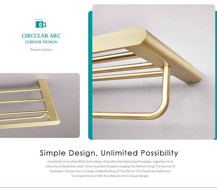 Wall Mount Brushed Gold Double Layers Bathroom Towel Holder Bar Stainless Steel Bathroom Accessories Shower Shelf Towel Rack