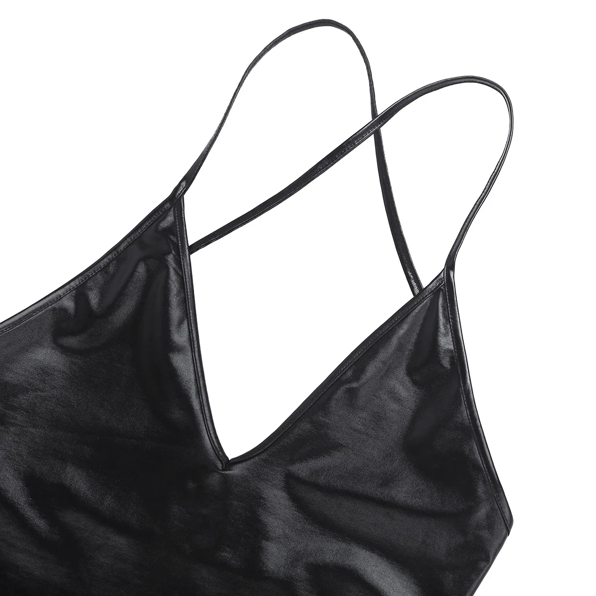 Регулируемые бретели-спагетти, Глубокий V-образный вырез и высокий вырез.