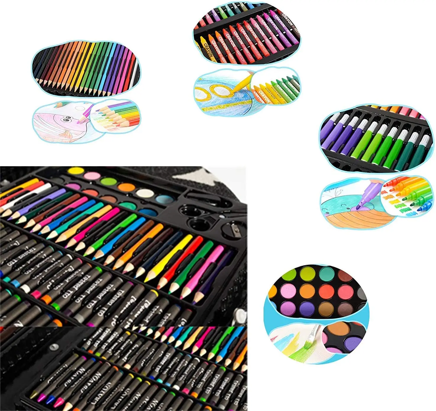 Особенности: 1. Лучший друг художника: набор включает в себя все, что нужно вашему маленькому художнику, чтобы раскрыть ее творчество. Поощряйте воображение и развитие Вашего ребенка. Ваш ребенок может научиться рисовать, выражать творчество и развивать хорошие привычки для учебы. 2. Высококачественная коробка художника: в этот ящик входят масляные пастели, цветные карандаши, пирожные, нарисованные акварелью и маркерные ручки. Позволяет художникам рисовать разными способами. Все изделия изготовлены из нетоксичных и без запаха материалов. Идеальный художественный инструмент не позволит вашему маленькому художнику упасть. Мы считаем, что ваш ребенок будет доволен своей новой работой. 3. Легко носить и делать покупки: деревянная коробка художника маленькая и легкая, с быстроразъемной ручкой для легкой организации и переноски. Отлично подходит для деловых путешественников, художников, путешествующих в школе, дома и в другом месте! Описание: подарки идеально подходят для детей: эта красивая коробка для картин-идеальный подарок для подростков и детей для подростков, Рождество, дни рождения детей, новые годы, новые семестры и вечеринки характеристики: Материал: ABS Цвет: черный Комплектация: 36 цветных ручек 24 цветных карандаша 24 карандаша из цветного воска 24 цветные карандаши 12 цветных порошковых пигментов 20 пластиковых скрепок 1 правило 1 карандаш 1 Резина 1 точилка для карандашей 1 пластиковые ножницы 1 x пигментная щетка 1 x пигментный лоток 1 x клей 1 x Белый Пластик 1 x степлер Примечания: 1. Из-за различий между различными мониторами изображения могут не отражать фактические цвета проекта. 2. Из-за различных методов измерения могут быть физические ошибки. Спасибо!