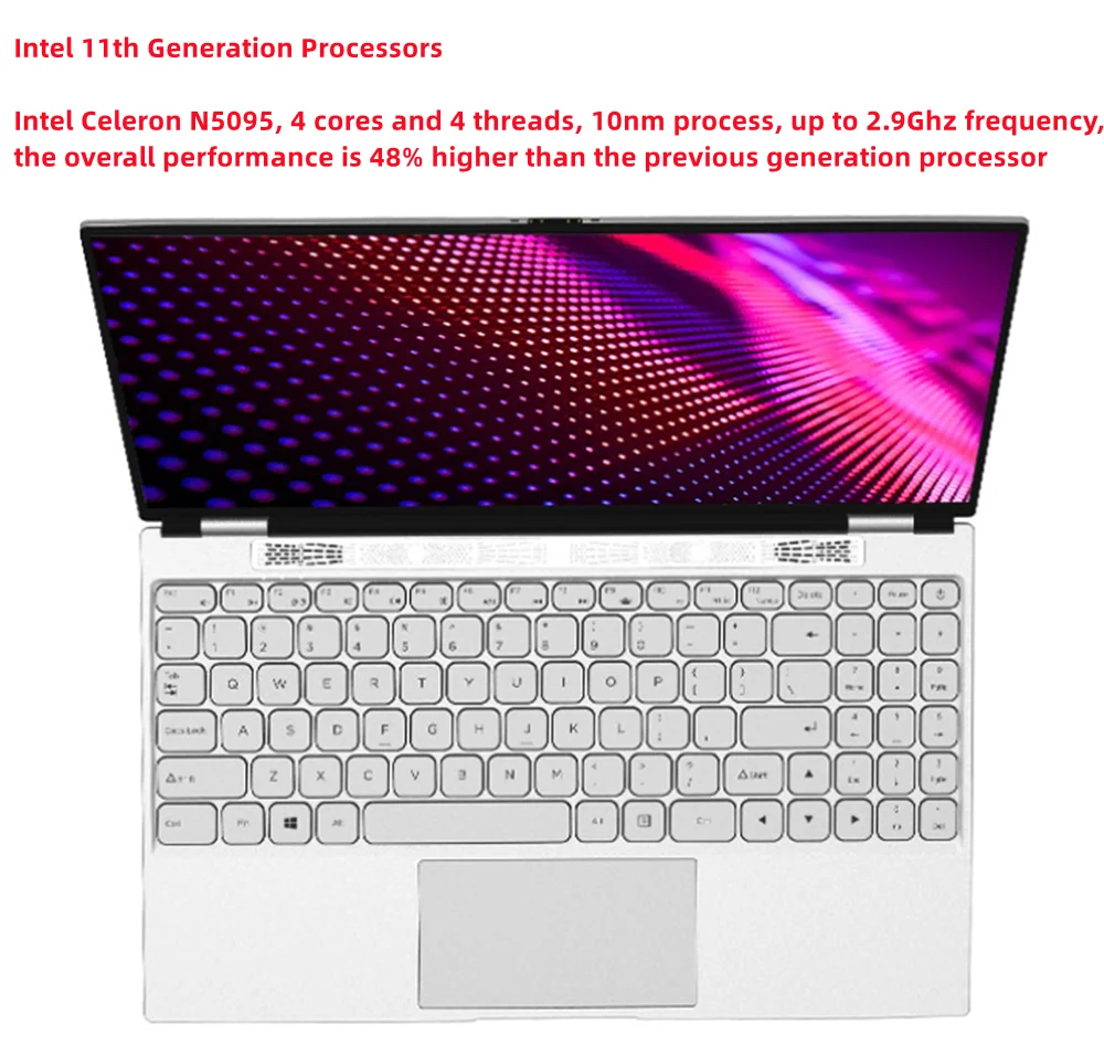 NWNLAP 15,6 дюйма ультратонкий Портативный ультрабук Тетрадь ноутбукNWN-HL156N:16GB RAM + 128G/256G/512G/1 ТБ M.2 SSDПримечание ЦП:Процессор Intel Celeron N5095 Jaser Lake поставляется в соответствии с запасами.Наклейки на клавиатуру: Наша клавиатура QWERTY английская стандартная версия, но мы вышлем наклейку для клавиатуры в подарок вам. Наклейки на клавиатуру: русский, испанский, французский, немецкий, итальянский, португальский, голландский, шведский, иврит, арабский, турецкий, тайский, японский, корейский.Спецификация: