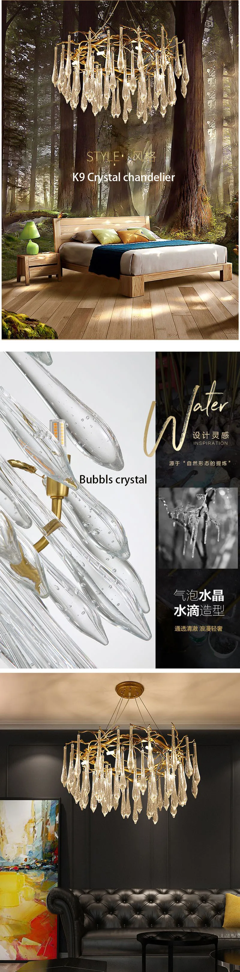 1. Современный стиль с хорошим качеством, алюминиевый корпус лампы и Кристалл K9 lbubble ampshade, делают лампу более роскошной и красивой.