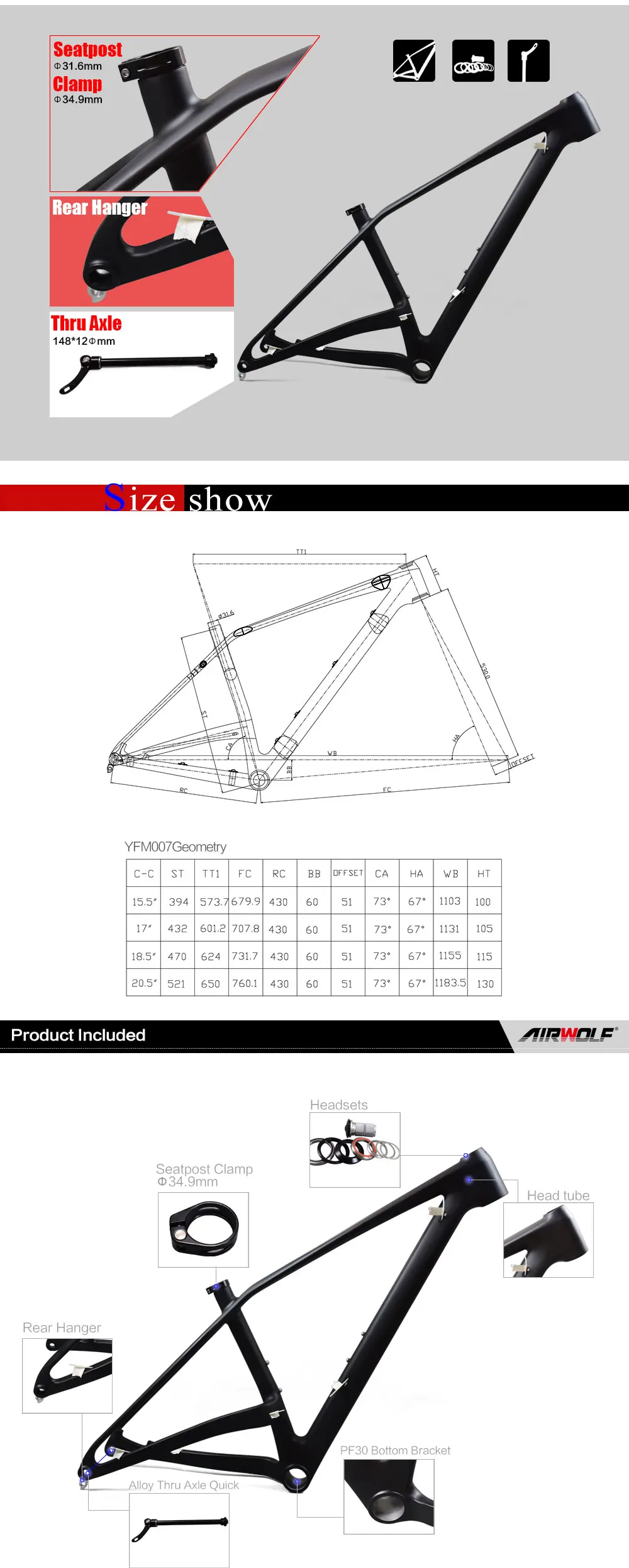 18. Продукт включает в себя: рама, гарнитуры, зажим подседельный штырь, через осевой стержень, алюминиевые детали