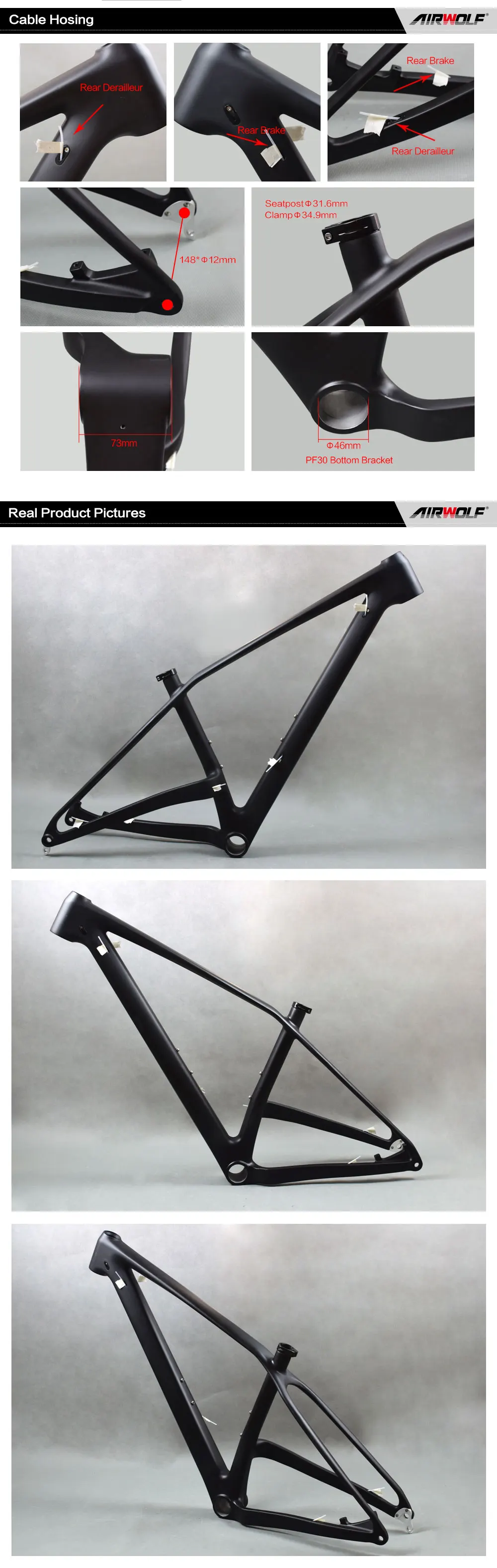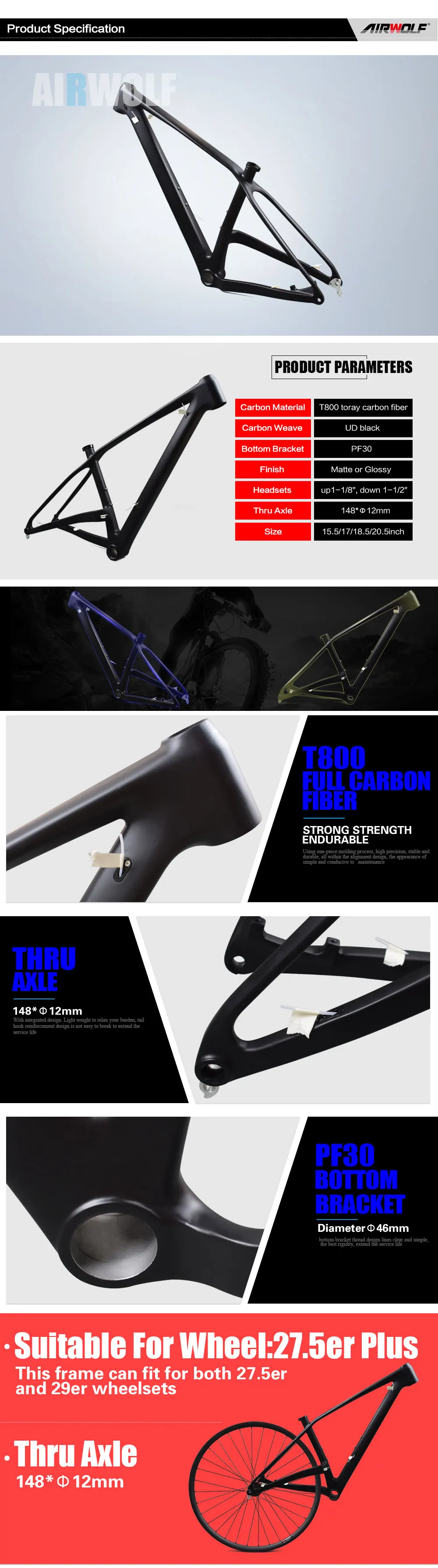 AIRWOLF рама карбоновая для горного велосипеда 27.5er и 29er рама совместимая через ось 148*12 мм матовая глянцевая углеродистая Mtb рама дисковый тормоз