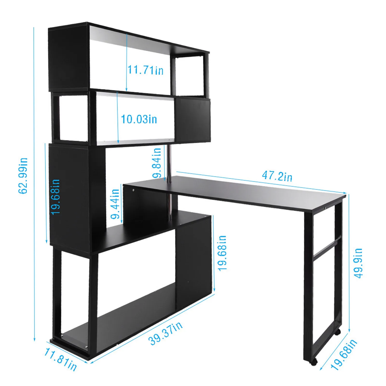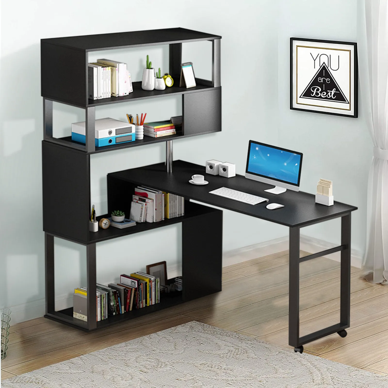 L-образный Угловой стол, вращающийся компьютерный стол с 5-этажной книжной полкой