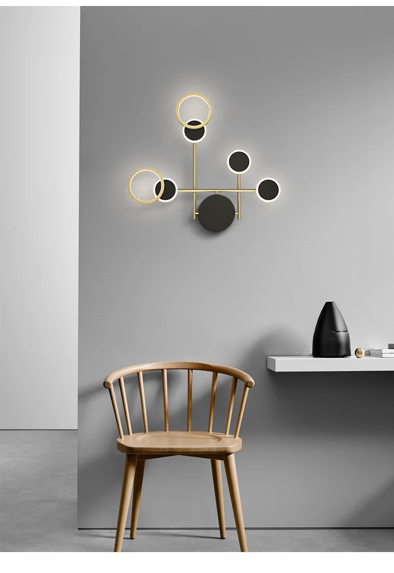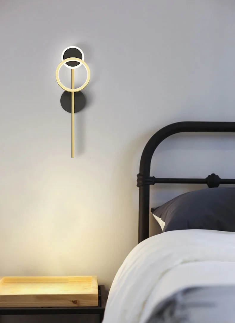 Kobuc вращающееся кольцо светодиодный настенный светильник прикроватные роскошные медные черные бра для спальни гостиной Лофт прохода дома внутреннего освещения