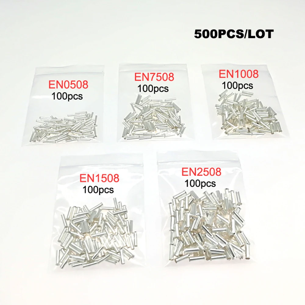500 шт. медная трубка обнаженный шнур концевые обжимные клеммы голые электрические провода кабельный разъем EN0508 ~ EN2508 наконечники 22-14AWG 0,5-2.5mm2
