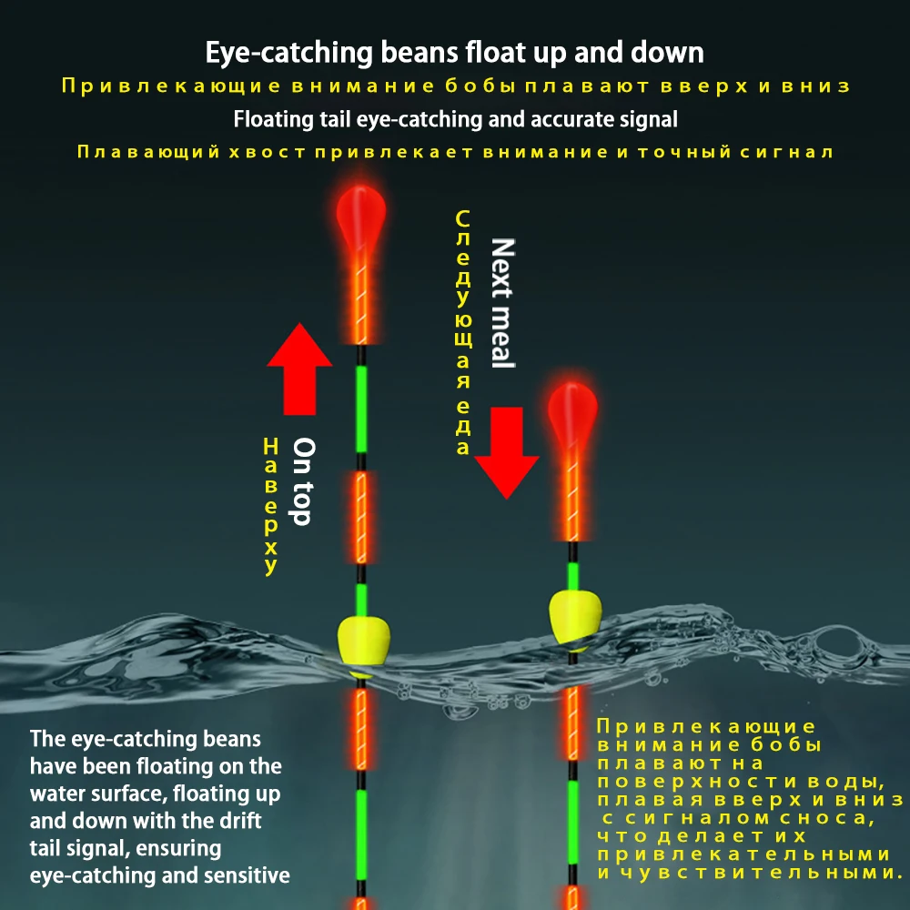 Особенности: подсветка в ночное время, двойного назначения днем и ночью, плавающие бусины могут четко фиксировать каждую крошечную осанку, когда рыба кусает крючок