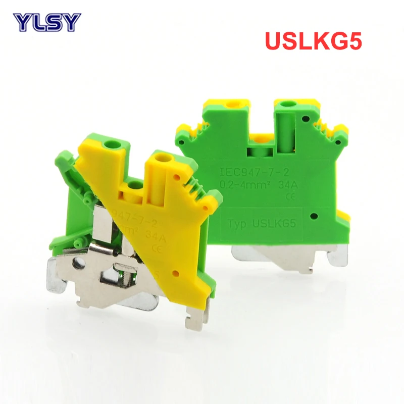 Наземные клеммные блоки USLKG5 din-рейка винтовой Тип клеммные блоки UK-5N желтый зеленый заземление Morsettiera разъем 4mm2