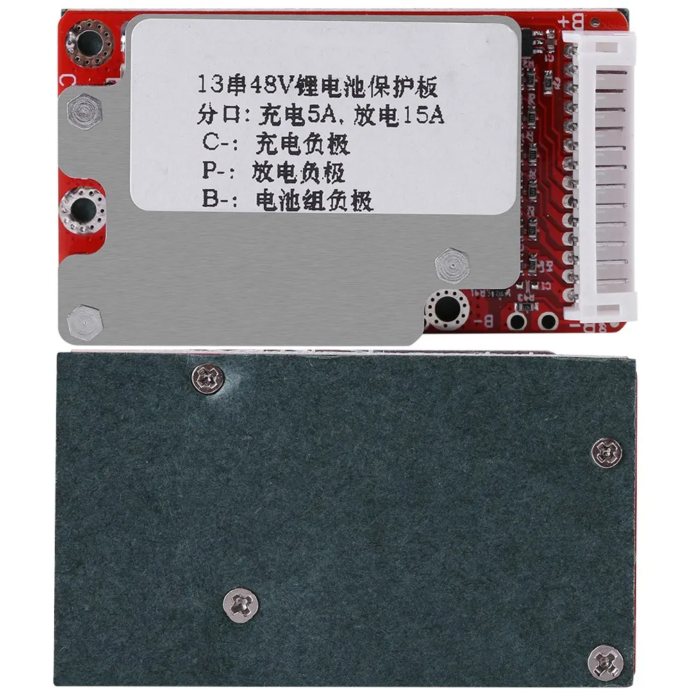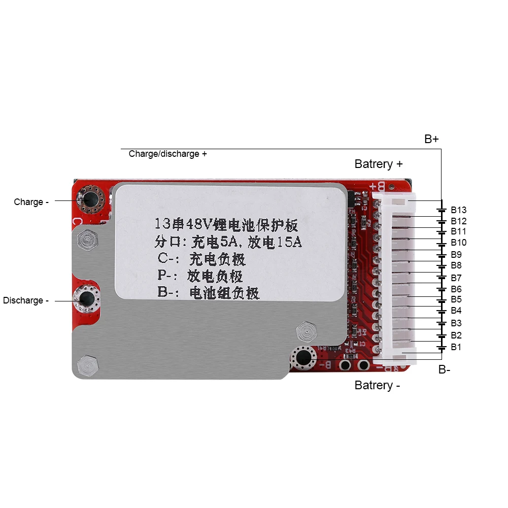 Защитная плата предназначена для литий-ионных аккумуляторов серии 13, используется для тройных аккумуляторов, аккумуляторов марганцевой кислоты и аккумуляторов кобальтовой кислоты. Разъем для зарядки и разъем для разрядки разделены, ток непрерывного разряда составляет 15а. Зарядка 5 А, разрядка 15 А, Перегрузка по току 45 А, подходит для электрических велосипедов с двигателем ≤ 500 Вт. Обладает функцией выдерживания высокого напряжения и низкого сопротивления проводимости. Стабильные различные защитные функции для зарядки и разрядки, такие как точная защита от перезаряда, защита от переразряда, защита от перегрузки по току и защита от короткого замыкания.