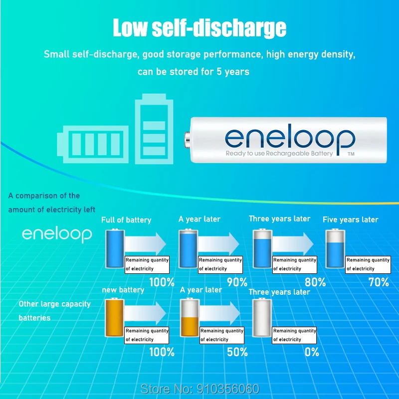 Тип: батарея AAA Напряжение: 1,2 в Емкость: 800 мАч Химия: Ni-MH Перезаряжаемый: около 2100 раз Размер (В * Г): около 1,75x0,41 мм/x дюйма