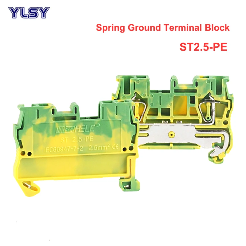 Пружинные клеммные блоки ST2.5-PE Bornier din-рейка желтый зеленый заземления клеммы блок провода кабельный разъем 2.5mm2