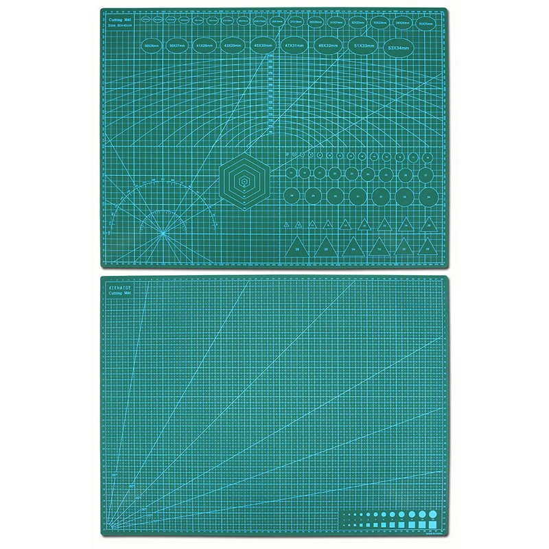 Высококачественный поливинилхлорид защищает листья и продлевает срок службы. Режущие иглы также могут сделать корты более удобными и гибкими, что позволяет легко нарисовать прямую линию на неровном ковре. Качество, самостоятельное обучение, может использоваться в двух аспектах. Чтобы предотвратить его отрезание стола После окончания учебы вам просто нужно усадить. Длина 60 см, ширина 45 см A2, толщина бумаги 3 мм, очень прочная. Размер: A2: 60 см X 45 см A3: 45 см X 30 см A4: 30 см X 22 см A5: 21 см X 14,5 см