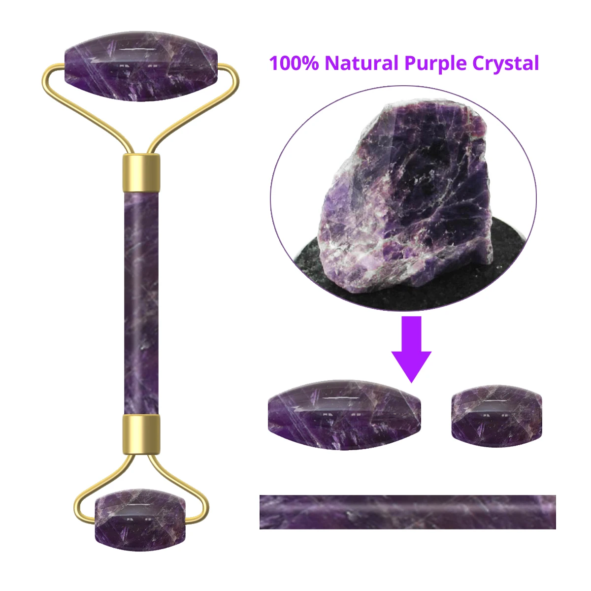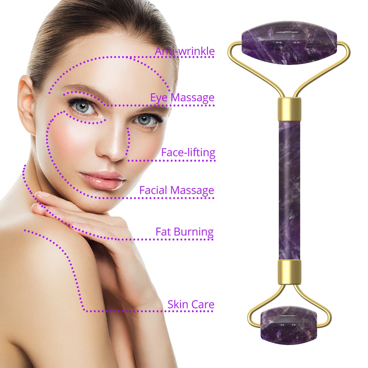 Аметист массажер натуральный камень ролик для лица Gua Sha набор инструментов спа Акупунктура соскабливание Кристалл гуашь скребок нефритовый роликовый набор
