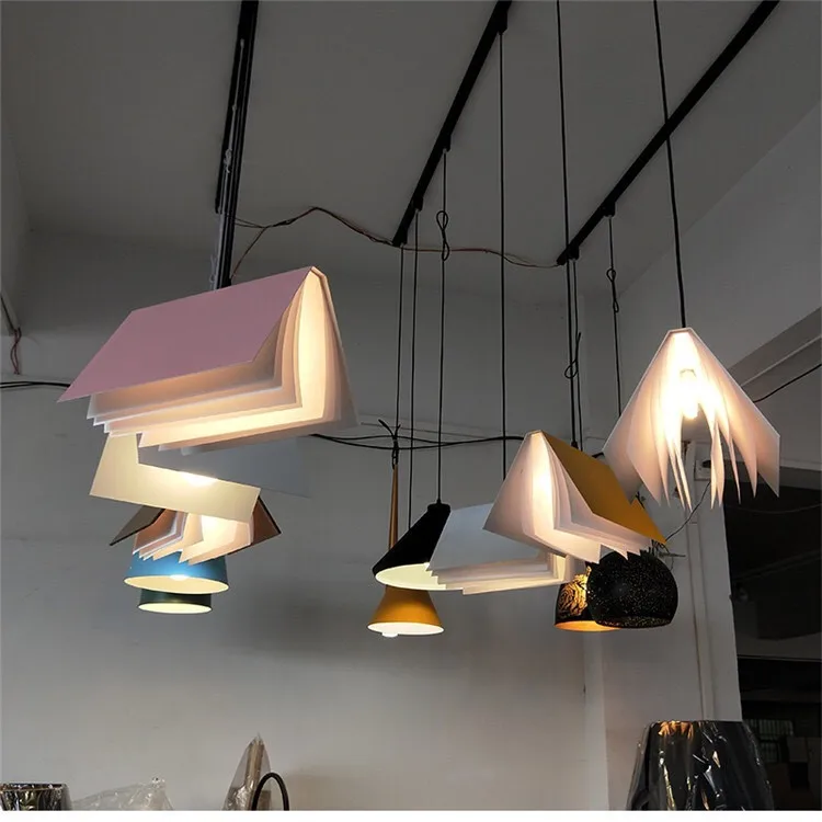 Креативный подвесной светильник Tiooka в форме книги для украшения магазина, черный, белый, синий подвесной светильник для детской комнаты, бара, кофейни, G9, подвесной светильник