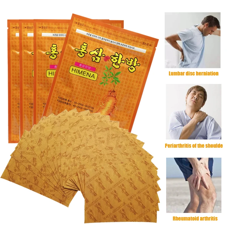 Product Name: Korea Red Ginseng Medical Plaster Package: With retail box,20 piece /bag Shelf Life: 2 Years Suitable Scope: Assist treatment for cevical spine,shoulder periarthritis,lumbar muscle strain,knee joint ache. How to use?1.wash your hands before applying the patch.2.Clean and dry the affected area.3.Bend the patch and detach the film to expose part of the adhesive side.4.Apply the adhesive side directly to the skin in the affected area.5.Remove plastic film by sliding the backward6.Only apply 1 patch to the affected area, this can then be left in place for up to 8-12 hours.7.Wash your hands after removing the patch.8.If pain recurs 8-12 hours after applying the first patch, a second patch can be applied. Please remove the first patch before applying a new one. Stop use and ask a doctor if:1. Rash,ache or excessive skin irritation occurs.2. Conditions worsen.3. Symptoms persist for more than 7 days or clear up and occour again within a few days.