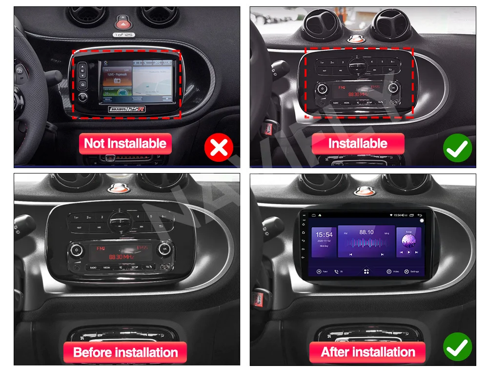 Для Smart Fortwo 3C453 A453 W453 2014 - 2020
