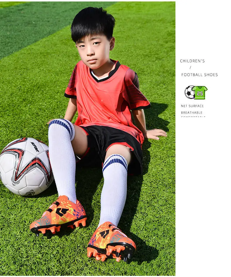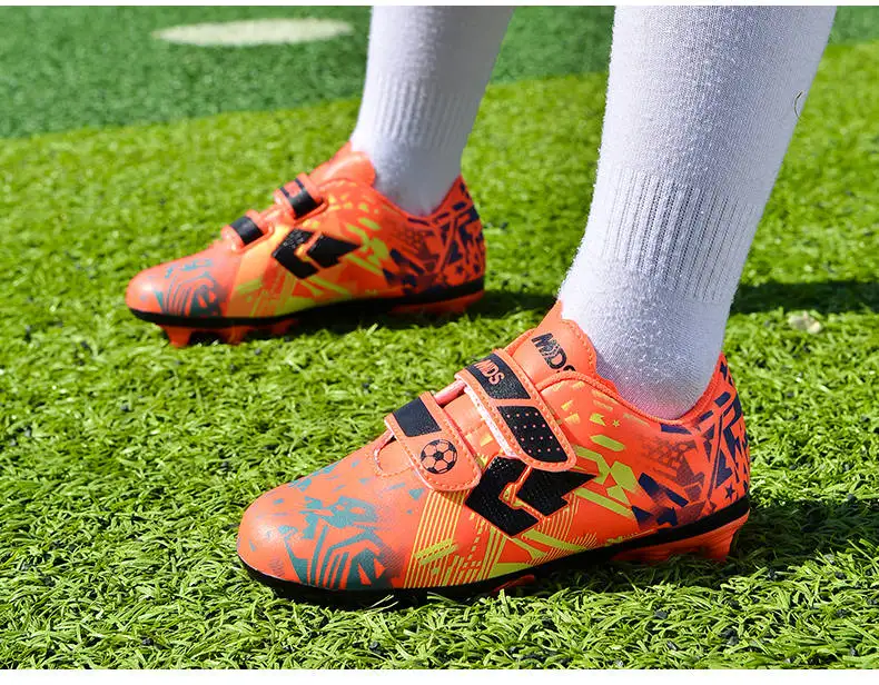 Описание товара: Оранжевая Детская футбольная обувь, домашняя обувь на липучке для футбола, обувь для мальчиков с буквенным принтом, длинная футбольная обувь с шипами, детская обувь, Zapatos De FutbolПосылка и доставка: