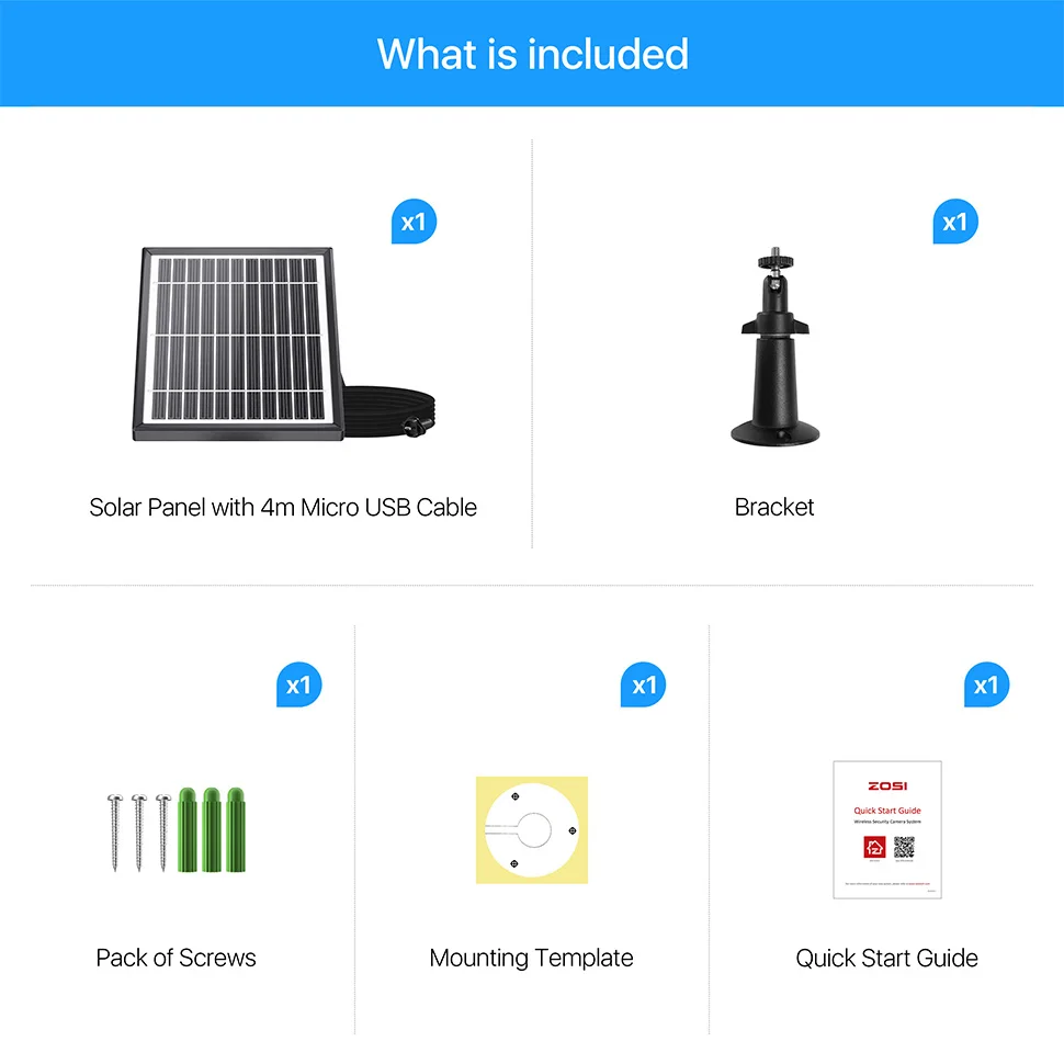 Предназначен для камеры видеонаблюдения ZOSI без проводов. Данная солнечная панель совместима только с моделью камеры ZOSI Battery: